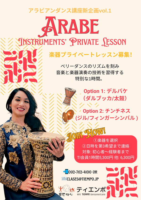 スペイン語、サルサ・ラテンダンス、アルゼンチンタンゴ、ベリーダンス、フラメンコ、アート ティエンポでは毎月様々なテーマに沿ってワークショップを開講中です。